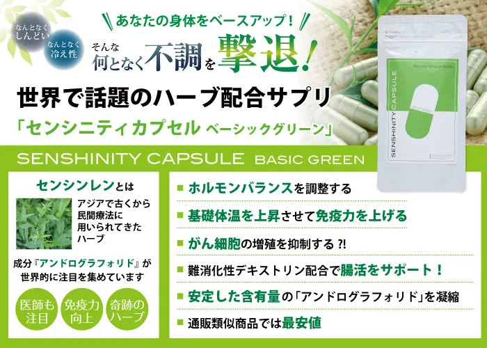 話題のハーブ「センシンレン」をカプセルに凝縮。注目の成分が、あなたの毎日の元気をサポートします。